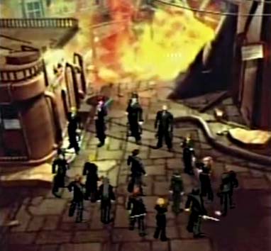 With Avalanche intending to use the Mako Cannon to destroy Midgar as a message to Shinra, Reno leads a contingent of Shinra troops against Avalanche's street forces and the Player Turk enters the cannon facility from an underground passageway. Lead by Tseng over the PHS, they work their way through the facility's security countermeasures and Avalanche personnel into the control room to turn off the cannon. Coming across the sight of a massacre at the entrance, the cannon is turned off mysteriously before the Turk got to the control panel.