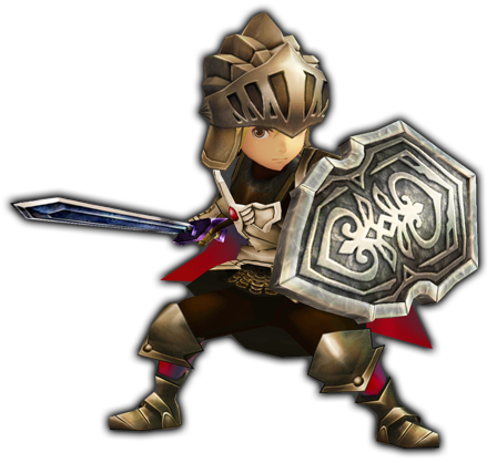 Knights are a tank-type job with a good balance of physical offense and defense, though their magical stats are poor. Because of this, they are often in the front line drawing attention away from their more fragile allies. The Knight can initially equip Swords and Pavises; when mastered they can also equip Daggers and Spears, and can dual wield.