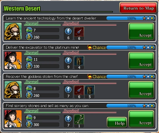 Advancing the world map required players to undergo quests. A staple element of the Final Fantasy series, quests required an amount of Action Power (AP) and pieces of equipment before they could be completed. There were also boss battles that involved the player and their social network friends.