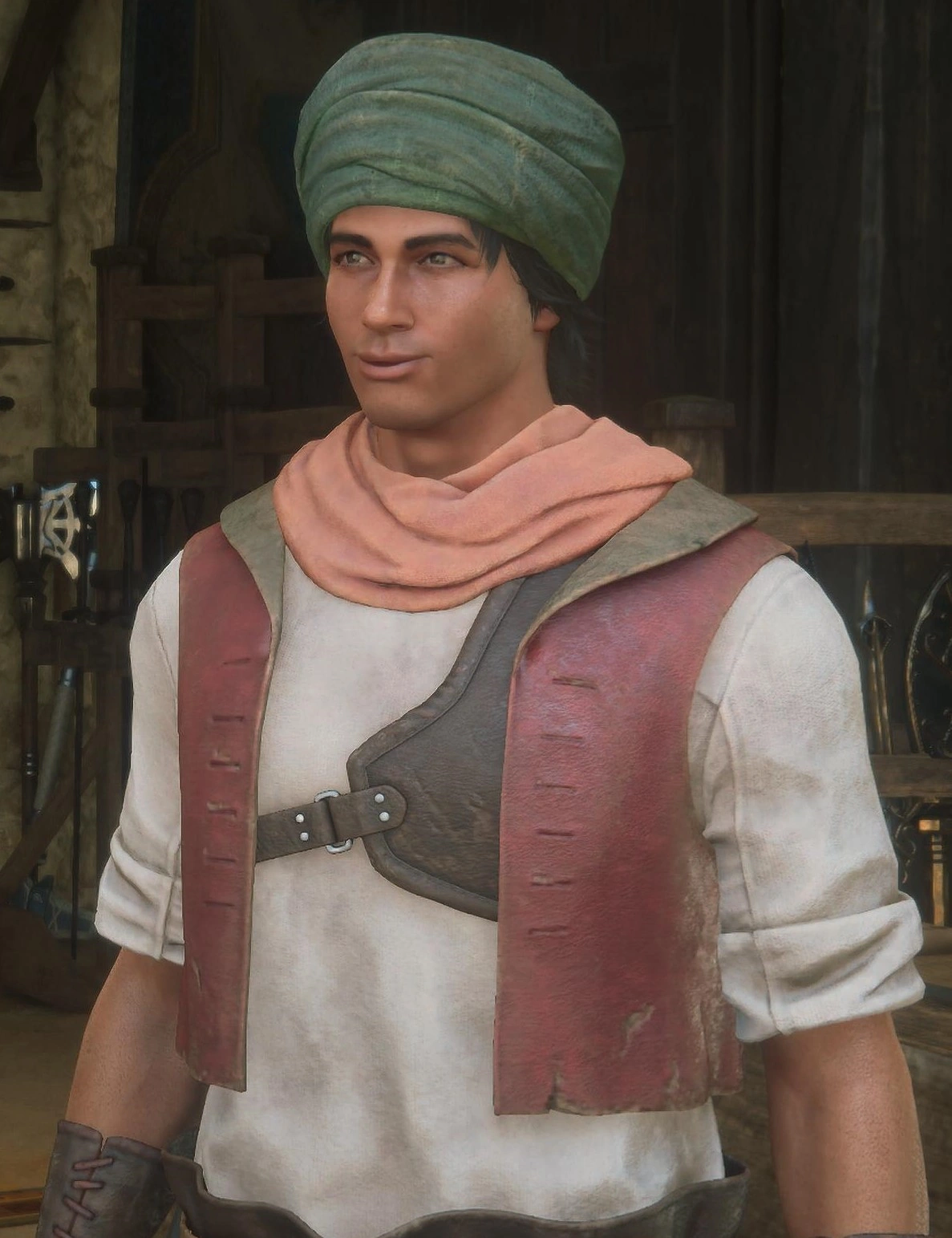 A well-dressed artisan, L'ubor's bearing reflects wealth and authority appropriate to a master forgemaster.