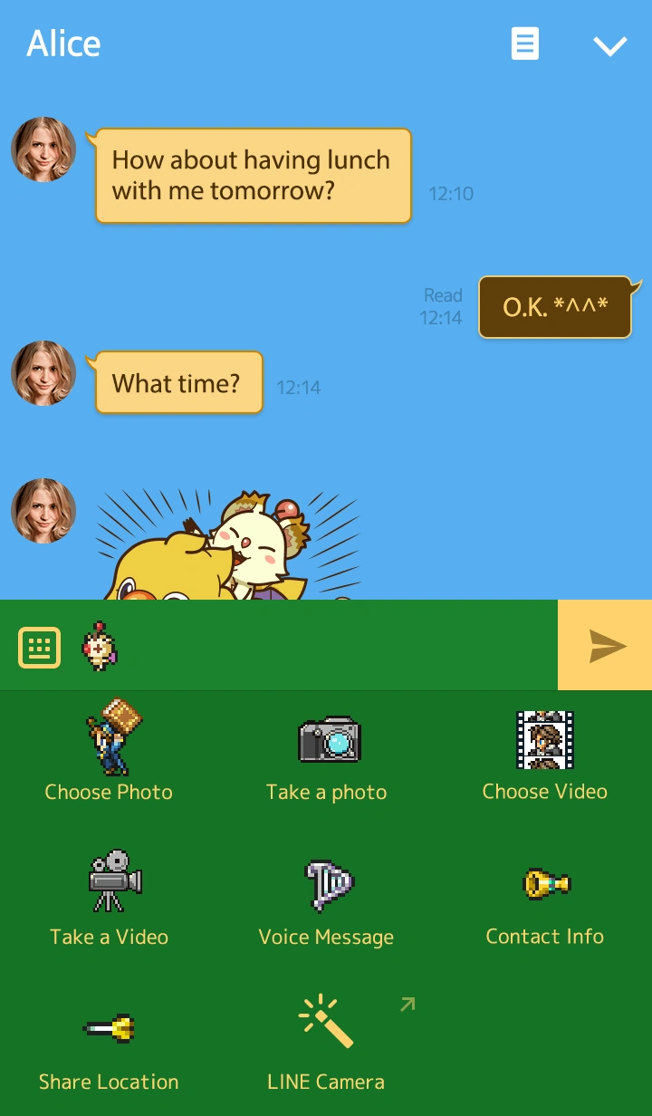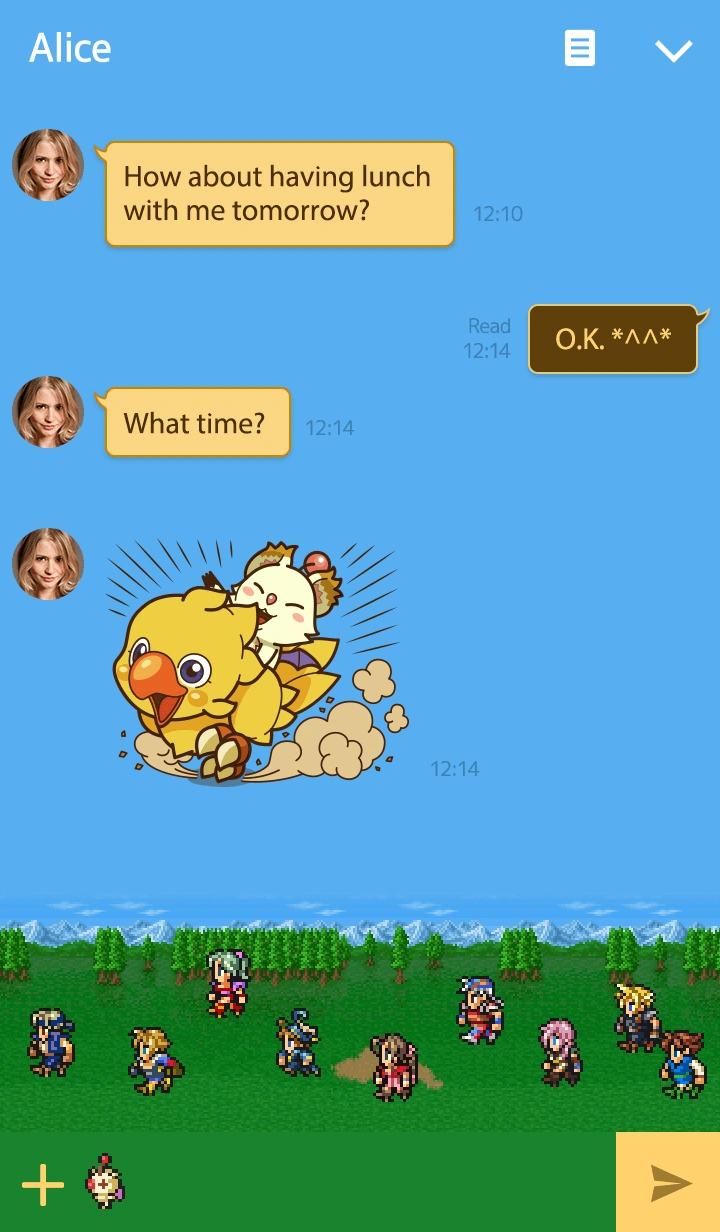 LINE features sticker sets and themes from select Final Fantasy games available for purchase in the LINE sticker store. Some sticker sets and themes are region-exclusive.