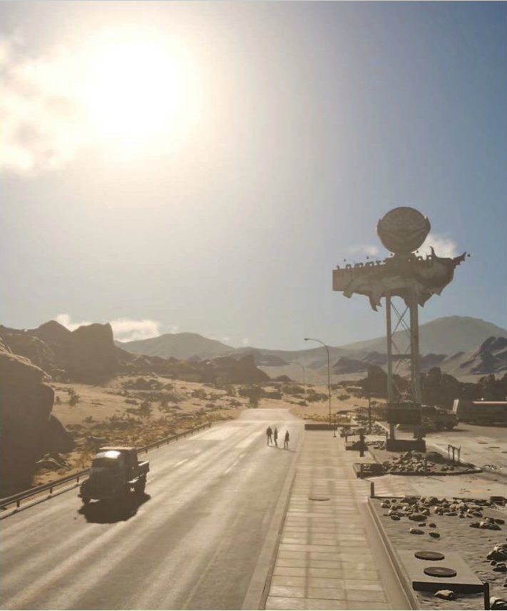 During Prince Noctis's journey to wed Lady Lunafreya in M.E. 756, his car, the Regalia, breaks down. Noctis and his traveling companions seek help from the mechanic Cindy Aurum at the local Hammerhead garage. They meet her grandfather, Cid Sophiar, who berates Noctis, saying he is not ready to become the king of Lucis. On a radio in a diner, a newscast talks about the king soon signing a peace treaty with the Empire of Niflheim, and how Leide will be among the areas that will be annexed to the latter. Though the people who live on such outlands oppose, the citizens of the crown city of Insomnia support the annexation if it will bring peace to the nation.