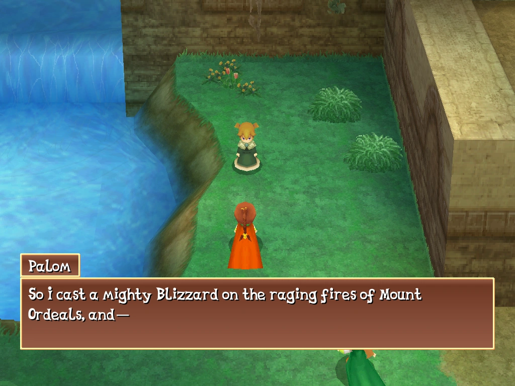 When one of Troia's eight Epopts falls ill, they seek a replacement. Palom is sent from Mysidia to train Leonora, whom the Epopts chose as the new guardian. They train at the Tower of Trials where Leonora learns some Black Magic under Palom's guidance. Palom teases her and makes rude remarks about the Epopts, which he apologizes for after Leonora says Troia has been kind to her.