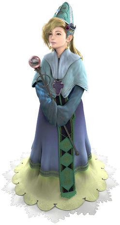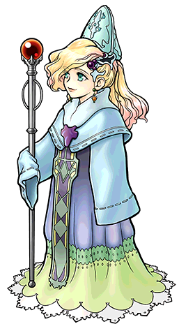 Like Biggs and Wedge, Leonora was originally unnamed in Final Fantasy IV. She appears in the ending as a little girl in Mysidia, listening to Palom brag to her about his adventures until Porom arrives to take him to the Elder.