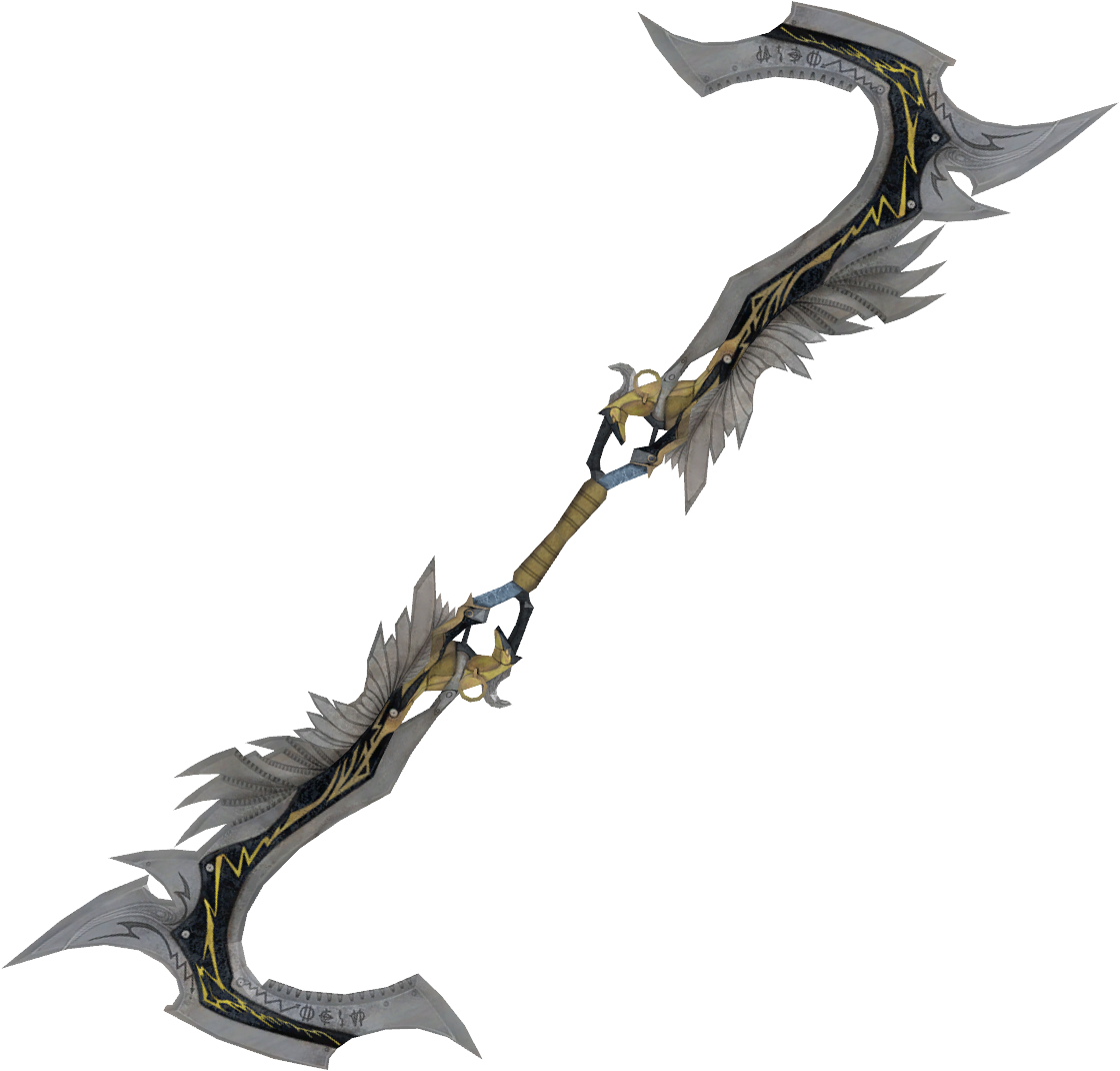 | A double-bladed weapon to be wielded by the skilled. How much damage it does will depend on the timing of its stroke. Rank: Good | ||||
