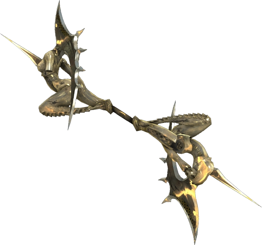 | A double-bladed weapon to be wielded by the skilled. How much damage it does will depend on the timing of its stroke. Rank: Superior | ||||