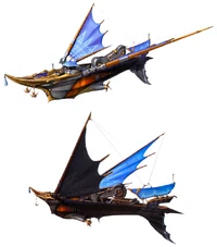 Two named sea vessels feature in the story: Cid and Mid's The Enterprise, a new type of ship propelled by mythril engines, making it the fastest ship on Valisthea, and the Kingdom of Waloed's flagship The Einherjar. Both are massive galleys, the Enterprise with red sails and the Einherjar with gray.