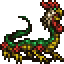 The artwork for the enemy reads ヘビニワトリ (hebiniwatori?), which are the Japanese words for snake (ヘビ, 蛇, hebi?) and chicken (ニワトリ, 鶏, niwatori?) concatenated together. Above it is the text ルネンタ (runenta?) which is the name of the Tunneller from Final Fantasy V, whose name is likely formed by reversing a transliteration of "tunnel".