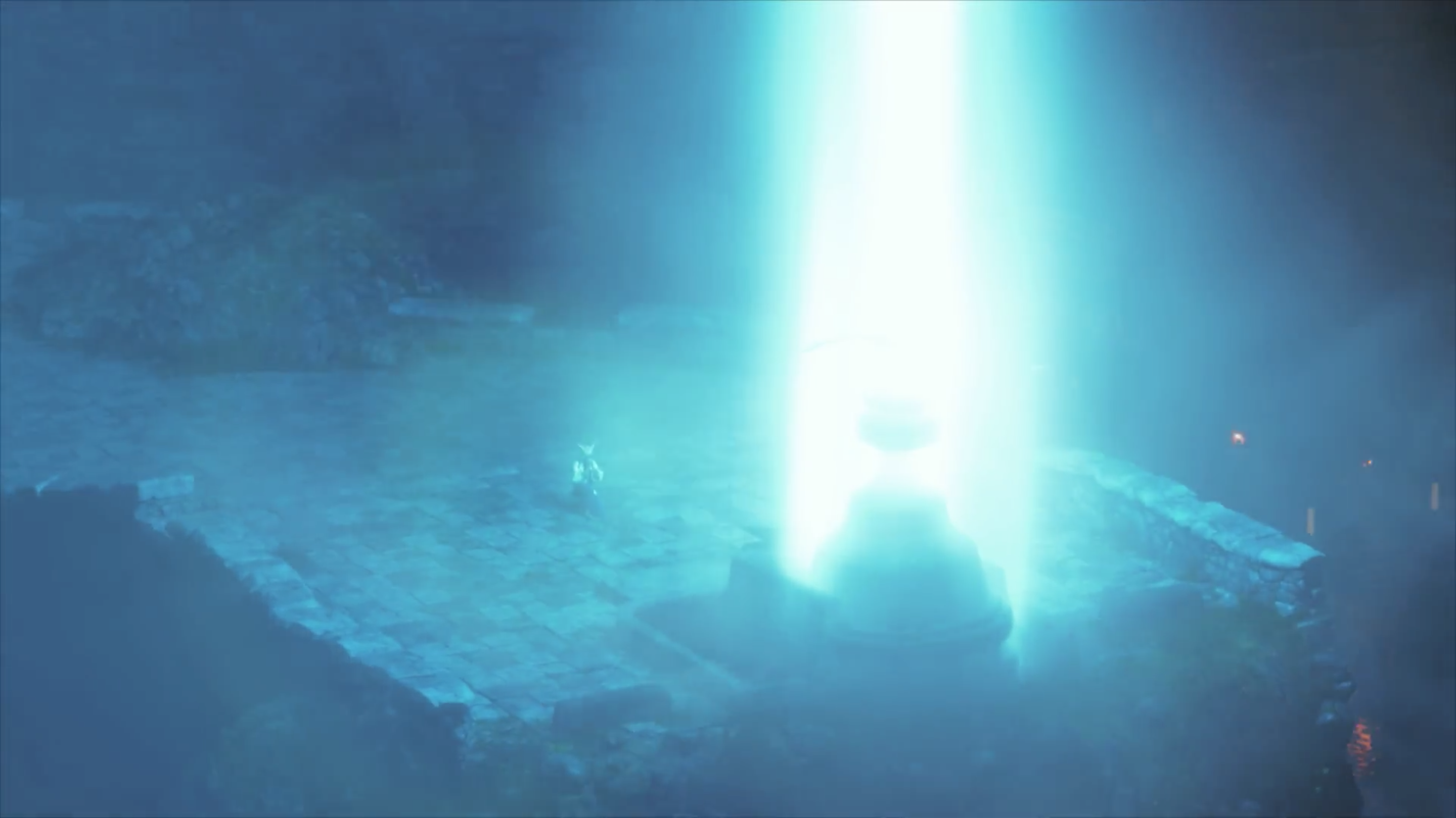 Column of light in Llymlaen's stone in End of an Era cutscene.