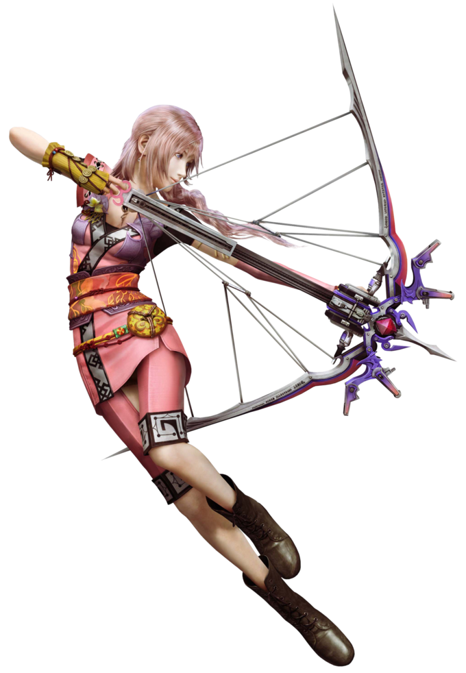 Both Serah and Noel wield long range weapons; Serah's bowsword becomes a bow or sword depending on range, while Noel wields a pair of swords that can combine into a spear that also functions as a javelin.