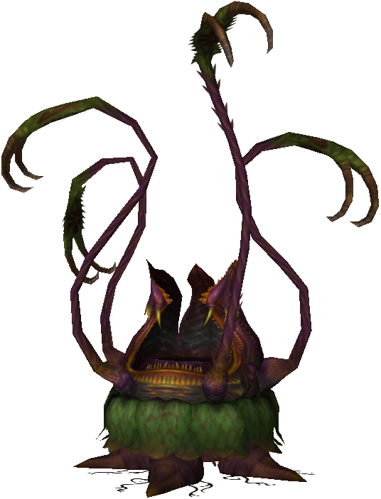 Its claws inflict poison. Restores lost HP by sleeping. Retaliates with Earthquake if awakened, so watch out. Being a plant, it burns easily.