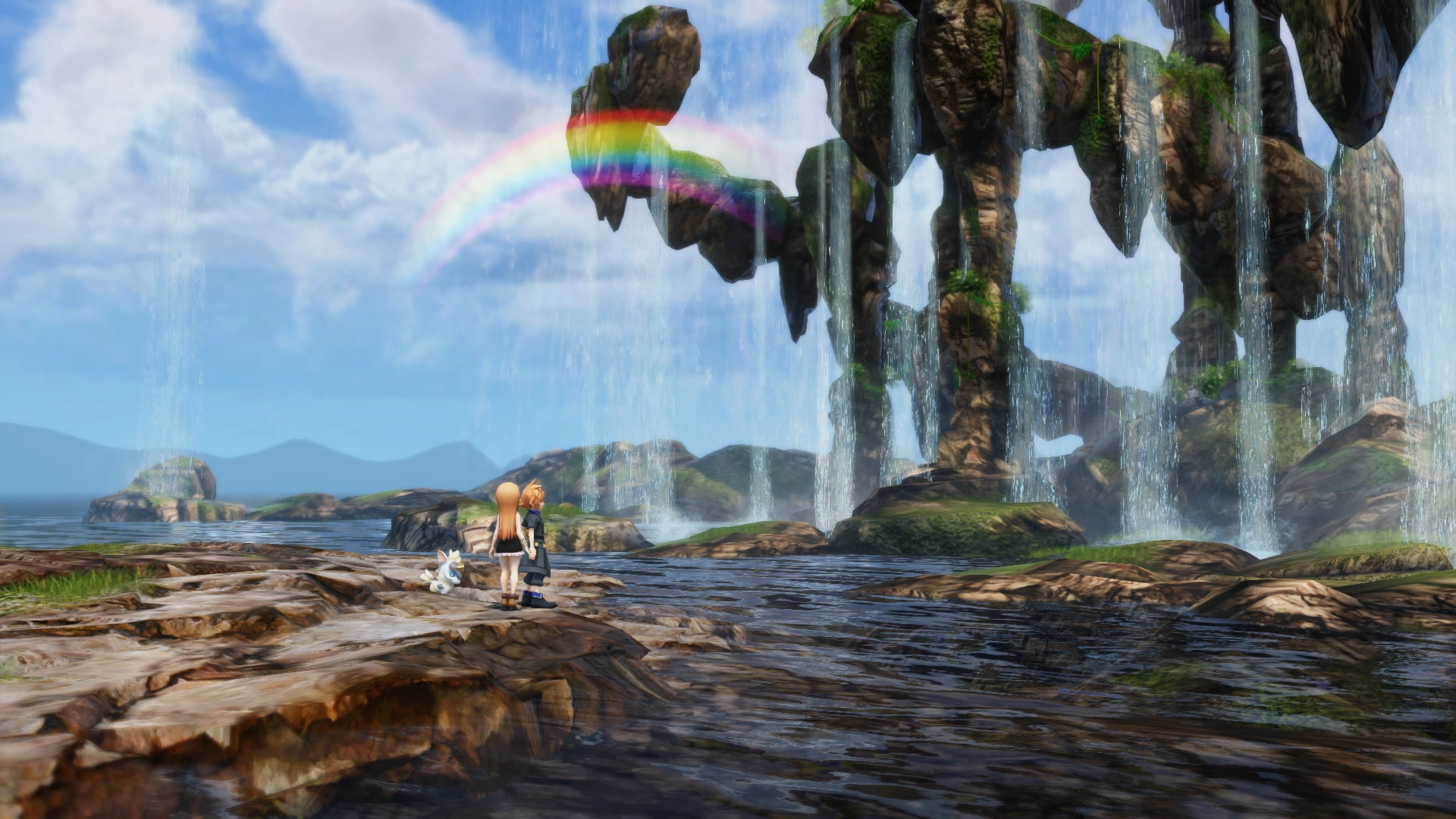 Grymoire's untamed waters are dotted with rocky spires and lined by rainbow shores. If you're lucky, you might get to see them up close atop an adamantoise's back.