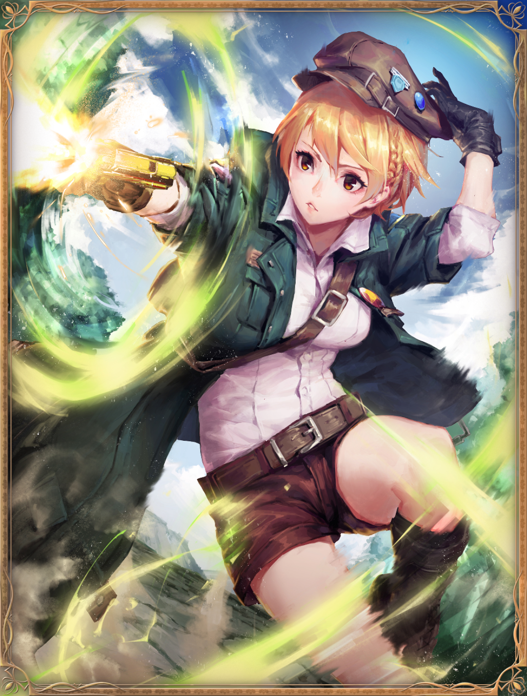 5★ - No. 0950:A rebellious gunner who although skilled, is consistently in a bad mood. Lucille is a lone wolf who had always worked by herself. Although now she pretends to be earning her pay by simply encouraging a rich girl's pastime, the truth is that she is beginning to enjoy her time being involved in Ryumynui's antics.