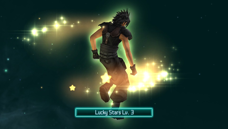 Lucky Stars is Cissnei's Limit Break on the Digital Mind Wave. Lucky Stars heightens the Emotion Gauge, raising the chances of going into Modulating Phase and triggering another Limit Break. In addition, Zack will go into a status where all his attacks will be critical hits for a period of time.