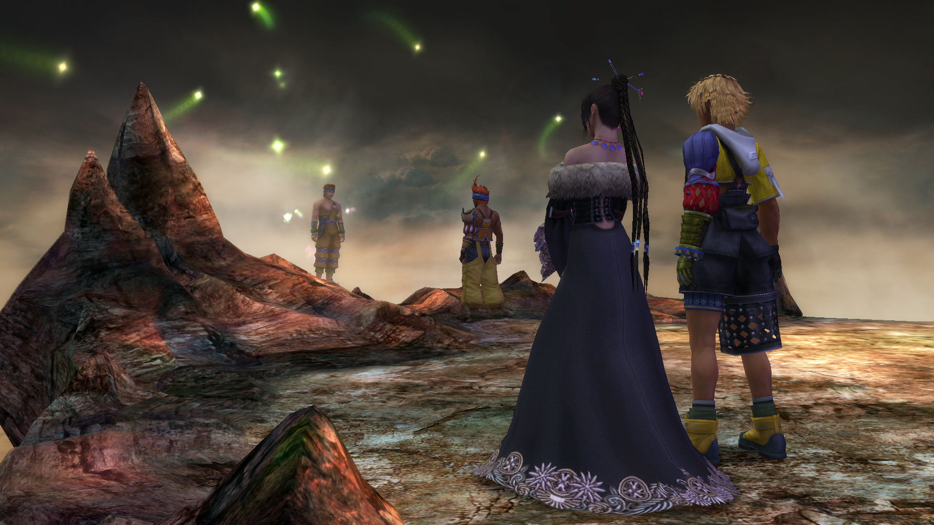 After discussing Yuna's Al Bhed heritage with Tidus, Lulu shoots a flare into the air to signal Wakka, who wins the game for the Aurochs. After the tournament, fiends attack the stadium and Seymour summons Anima to slay them, impressing the crowds. When they are about to leave, Tidus and Auron request to be Yuna's guardians, much to Lulu and Wakka's surprise.