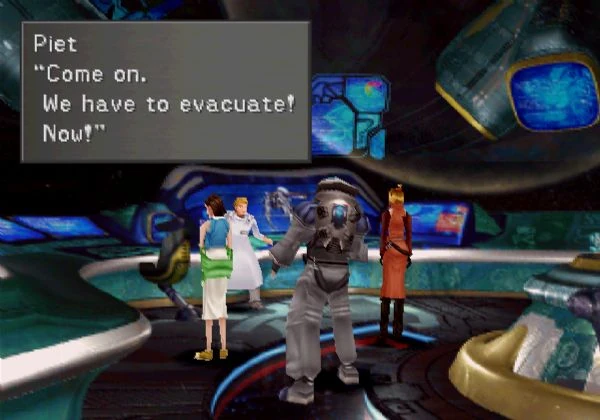 The escape pod falls to the plains of Esthar, from where G-Forces capture Ellone and take her to the Lunatic Pandora where Adel is recuperating, ready to become Ultimecia's next host. Piet stays at the crash site, distraught over the destruction.