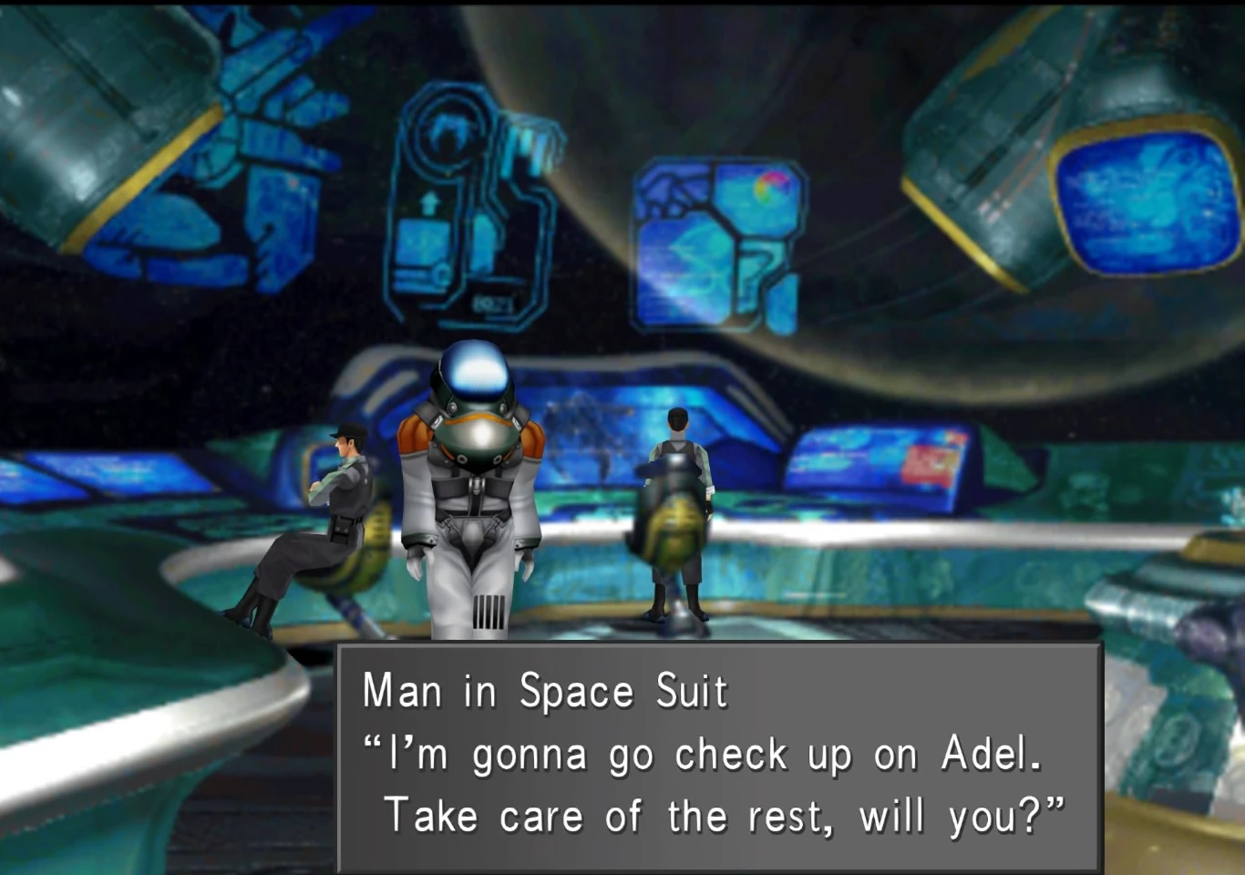 - Man in Spacesuit/President, is aboard the base to check on Adel. It is implied this is Laguna Loire. When he says he "has a feeling" soldiers would not be needed to escort Squall's party, Controller A assigns a security team to escort Squall's party anyway. He complains, saying "Thanks for the vote of confidence. Why do you always play me like that?" hinting his hunches have either been debilitatingly unbalanced, or just flat out wrong.