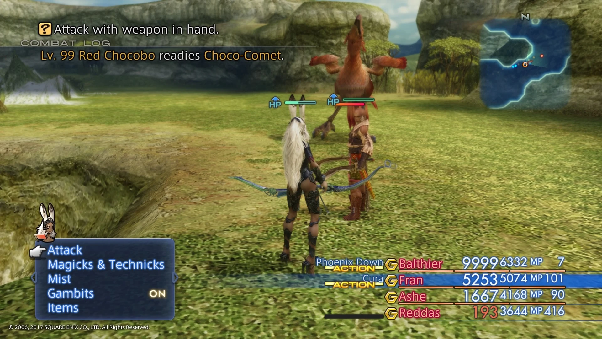 Lv.99 Red Chocobo in battle.