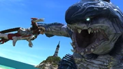 After reporting back to Haermaga, he is pleased with Lyonell's progress and explains that his costume is inspired by the legendary Phoenix. Like the legendary bird, he hopes that Lyonell can be reborn and thus regain his lost confidence. This hope is soon tested when a huge shark emerges from the depths of the ocean and attacked the visitors. When Khloe was cornered by the monster, Lyonell without his mask, is forced to confront it in an impressive display of bravery.