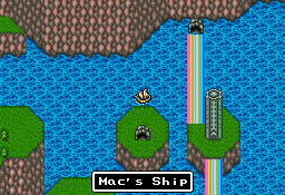 Mac's Ship (マックのふね, Makku no Fune?) is a location and a transport in Final Fantasy Mystic Quest. Initially shown during the second part of the game in Aquaria, it is the sailing ship of Captain Mac. Sometime prior to the game, Mac went sailing for further information on the Prophecy, learning of the Dark King and his command over the Vile Four that plagued the land. However, likely due to the Vile Four, the river dried up upon his return, leaving him stranded on a ledge over a deep valley.
