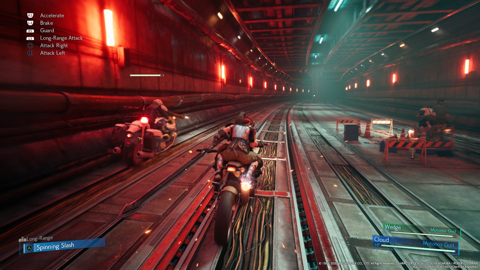"Motor Chase" is a bike minigame quest as Cloud and Avalanche travel through the Corkscrew Tunnel to reach Upper Sector 7. After this, all quests take place in Upper Sector 7 until "To Wedge's Place". Most of these are interactive quests with little combat, though in a "A Little Diversion", a major battle takes place in the Sector 7-6 Annex warehouse.