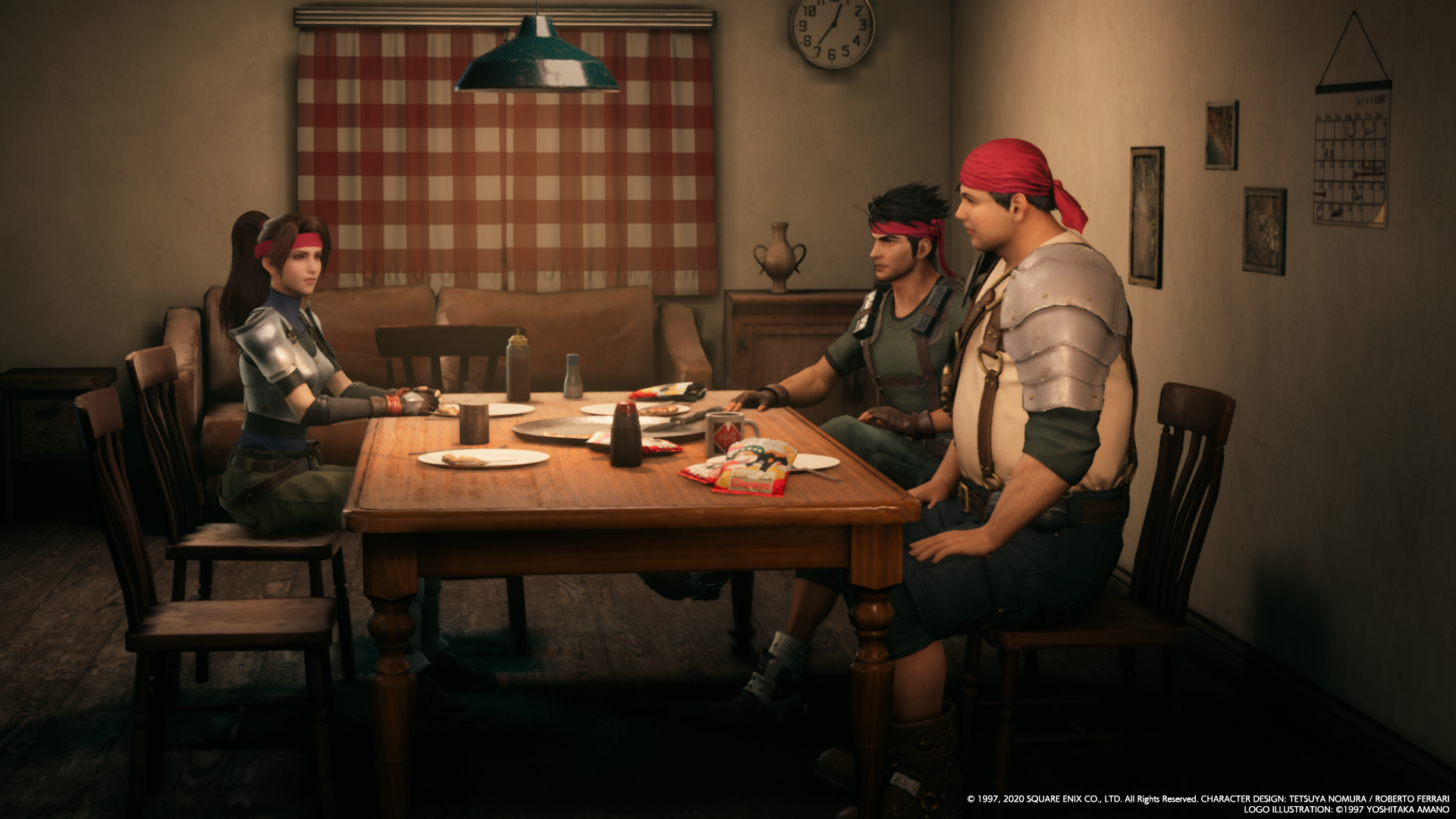 Cloud also finds a letter Jessie wrote to her parents about working as an actress in the Gold Saucer; Jessie is keeping her Avalanche affiliation a secret from her family. In the kitchen, Jessie's mom asks if Jessie will take a job at the Sector 8 theater instead of the Gold Saucer. Jessie's mom has made Jessie, Biggs and Wedge some pizza, Wedge calling them "The Midgar Special". Jessie says they need to go, though Wedge asks for seconds. Jessie, Biggs and Wedge meet up with Cloud outside.