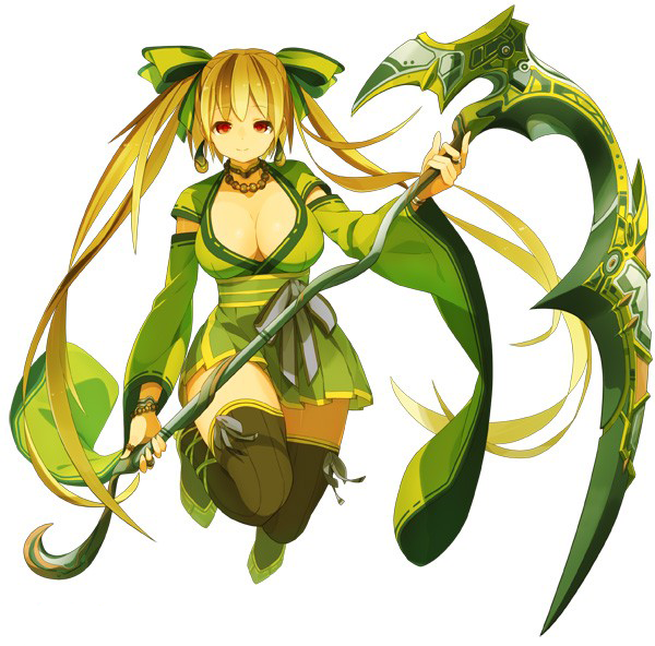Sandy appears a fire-elemental summon. Her special attack is Razzia, which deals fire-elemental damage to all enemies. All versions of Sandy are capable of going up to rank 7. Summoning Sandy costs 2 points from the Consumption Gauge. Sandy's stat growth is more focused towards increasing the strength and magic stats.