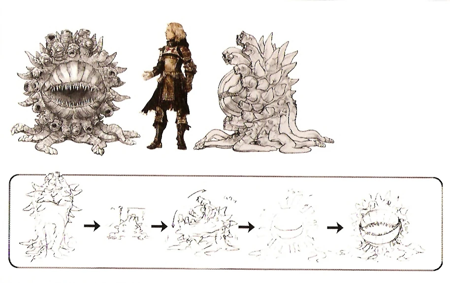 Malboros walk with their mouths facing upwards when not in battle—they tilt their mouths down to attack when they engage the party. They have a range of breath attacks, like Cloying Breath and Putrid Breath, each with a variation of status afflictions.