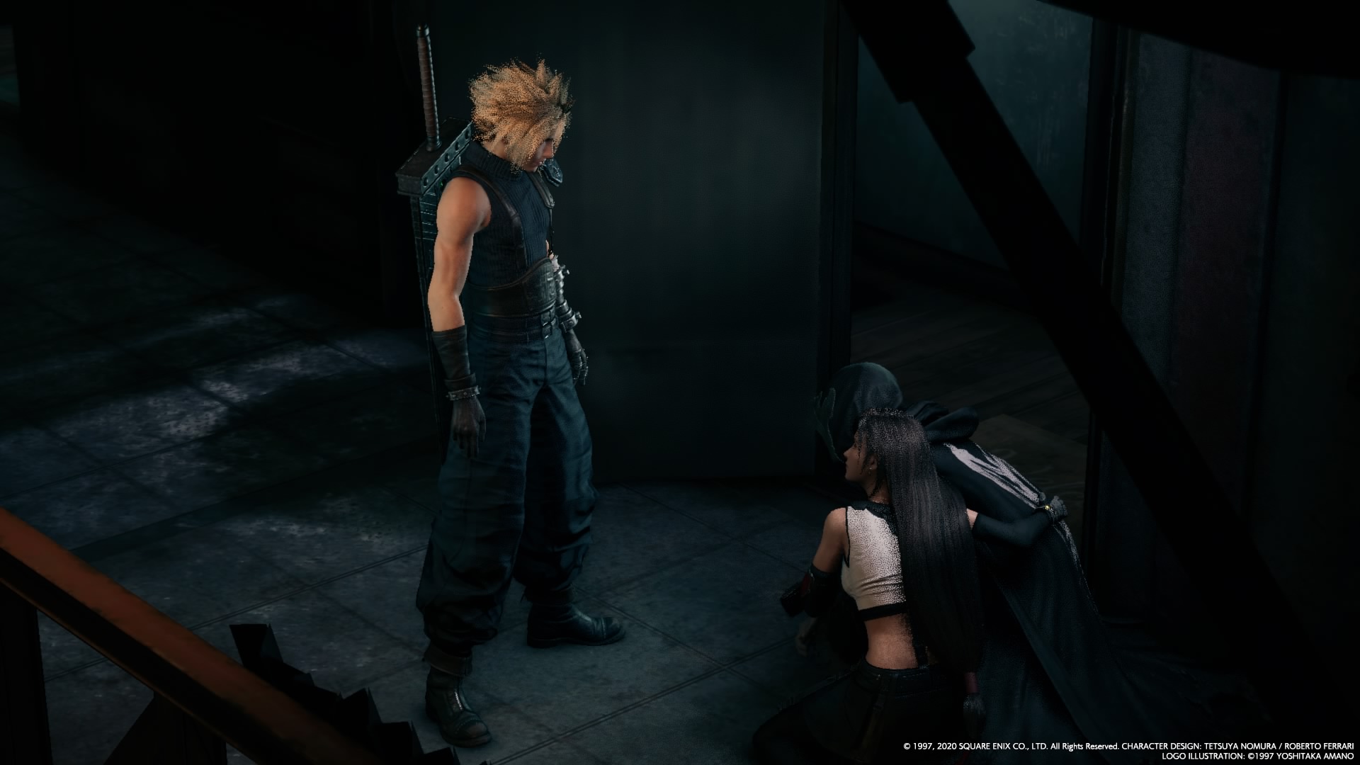 Tifa stops Cloud from harming Marco.