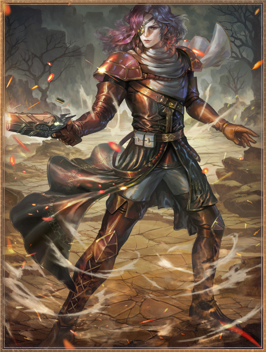 2★ - No. 0026:A gunman from the age of pioneers who protected explorers from roving beasts and ruffians. Maxell ventured into a den of thieves to protect his comrades, but was outnumbered and overwhelmed, ultimately paying with his life. His desire to serve as the shield of the weak and vulnerable now lives on as a vision which defends others.