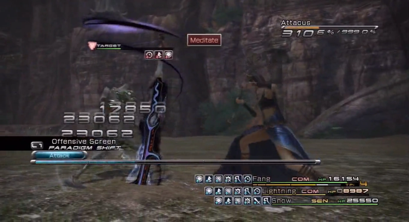Attacus can use Meditate after using Peerless Blade. After charging power for an extended period of time, the Undying deals a devastating amount of damage to a single party member through five attacks that can inflict Slow, dispel status enhancements, and remove status ailments from the user.
