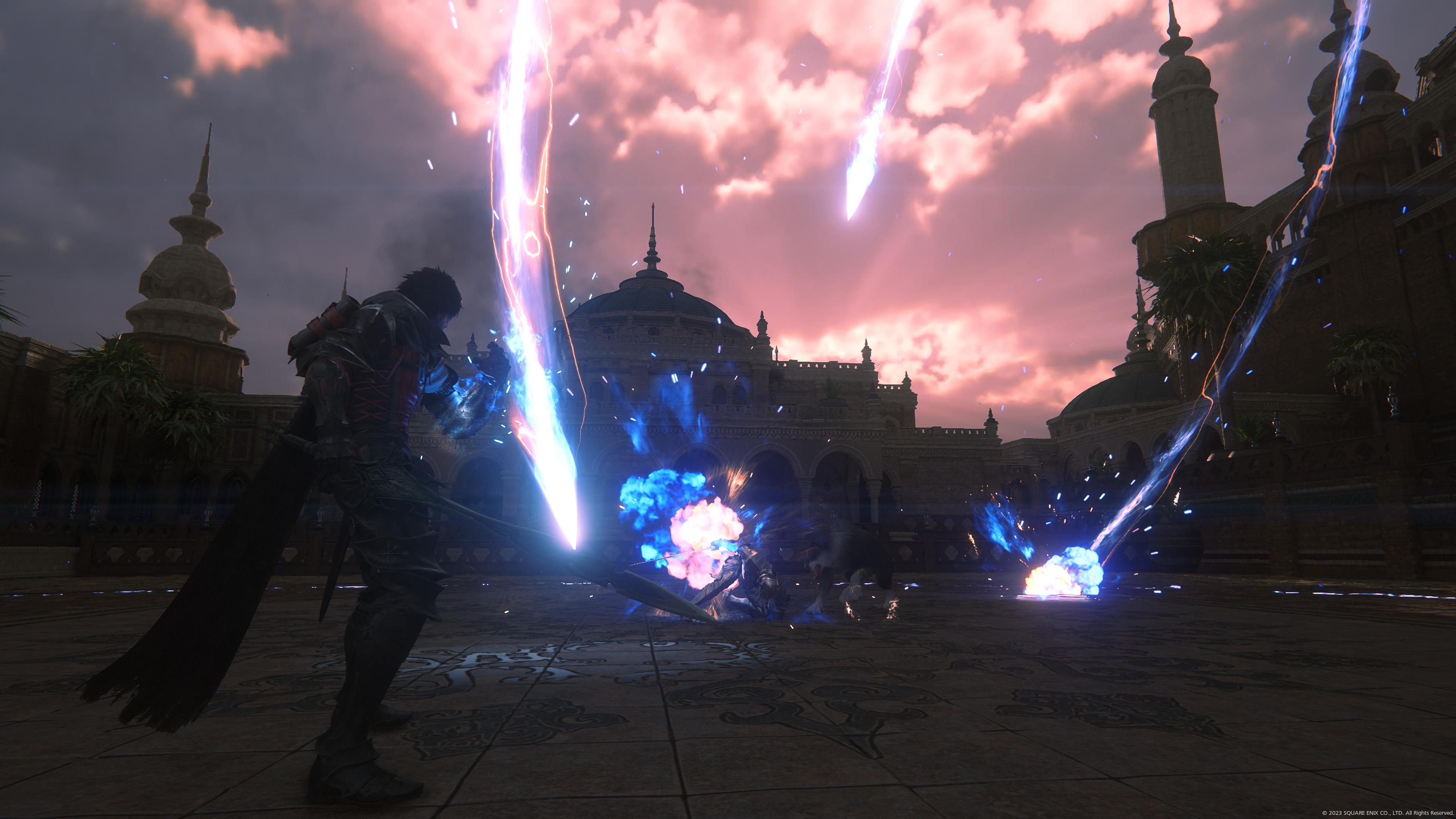 Megaflare is the unique action ability for Clive from the Eikon Bahamut. It is activated by gaining Megaflare charges when performing the Wings of Light Eikonic Feat. Once activated, Clive will unleash a barrage of streams of light onto the targets, striking numerous times. Depending on the amount of charges, the number of streams and damage potency when performing the attack will increase. Megaflare is charged to level 3 by default, but can be charged to level 4 once mastered.