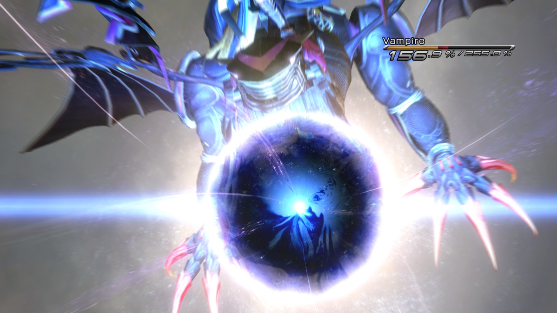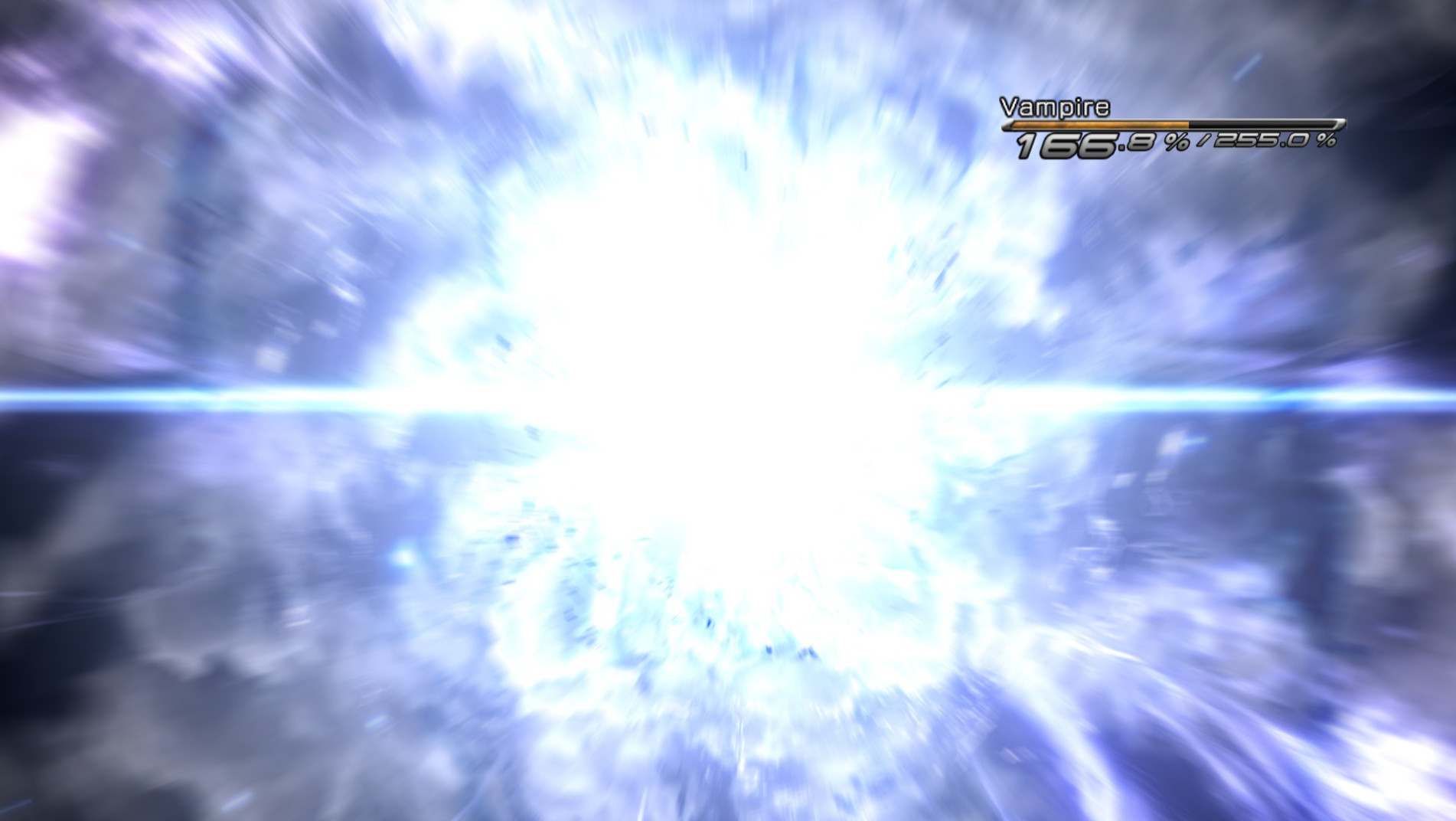 The boss Twintania is fond of retaliating with Mega Flare after being struck with a magical attack. The party can also catch the Prototype to use Mega Flare.