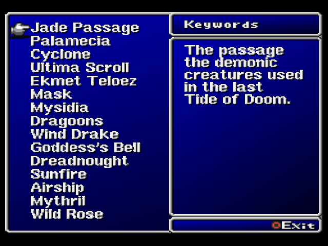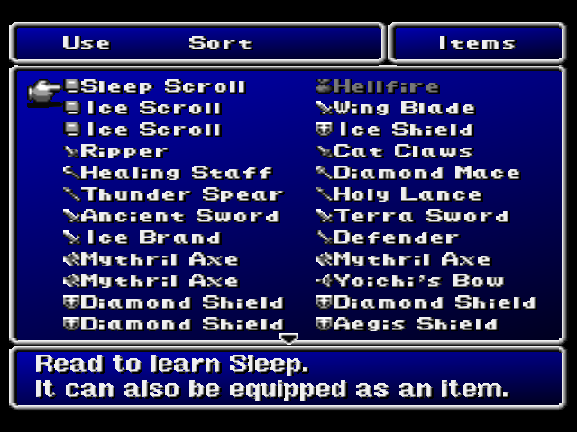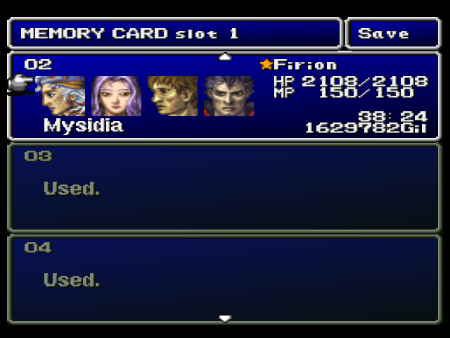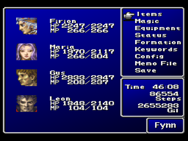 The following entails the contents of the main menu in all versions of Final Fantasy II.