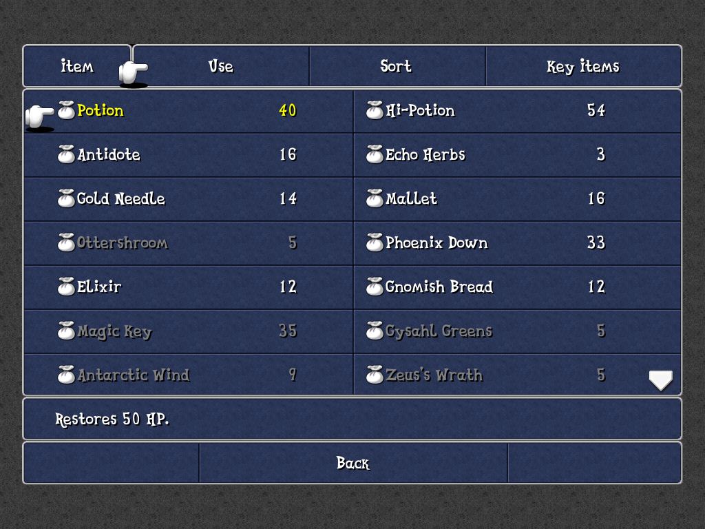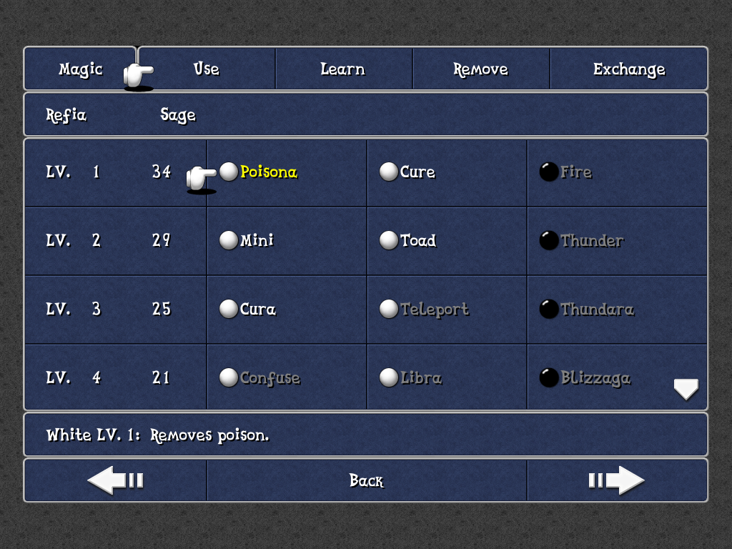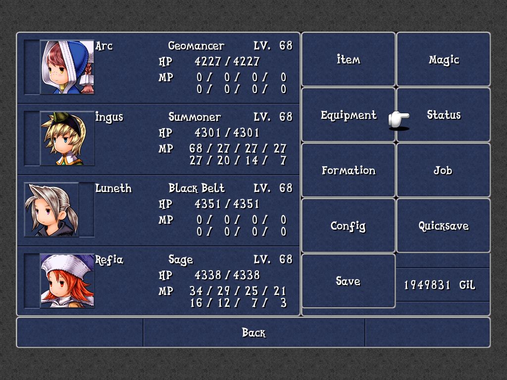 The following entails the contents of the main menu in all versions of Final Fantasy III.