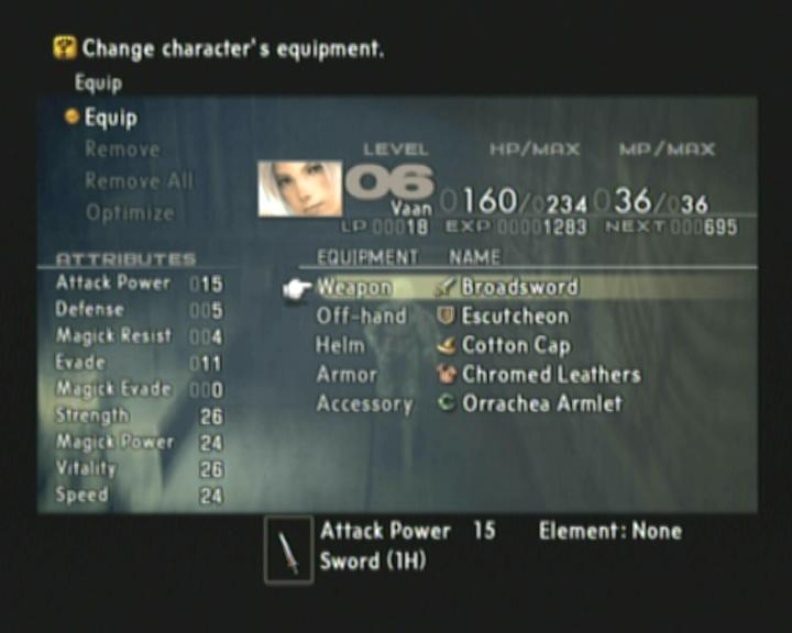 The following entails the contents of the main menu in Final Fantasy XII.