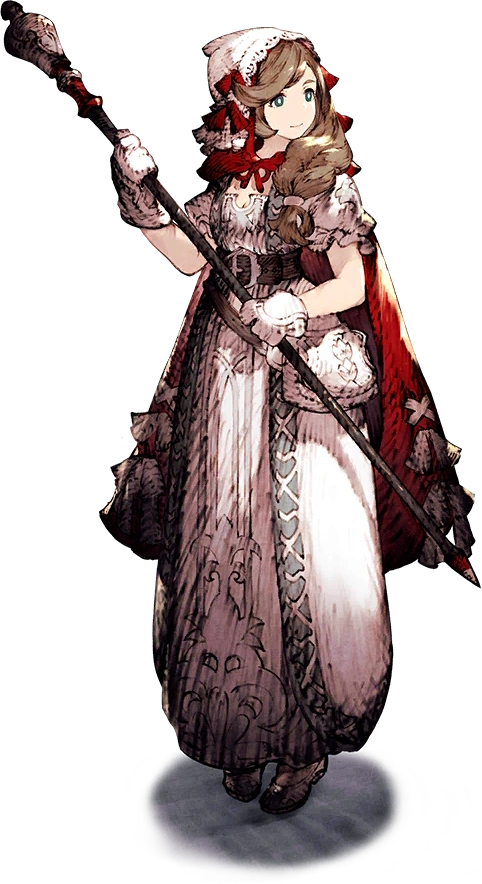A white mage Mont's group encounters in a destitute frontier village. Moved by Mont's desperate efforts to save the village, he asks to join him and guide his group to Wezette. A girl of few word, there is likely more to her than meets the eye...