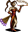 In the original release of Final Fantasy VI, the sprite was censored by having the smoke coming from her cigarette removed. The same was done to her palette swaps. The smoke is restored in future releases.