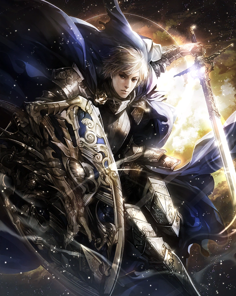 | The ideal knight-turned-tragic figure, his later life a long journey of redemption. This rare card can only be obtained through summoning. Creates light and wind skillseeds. Artist: Azul | ||||