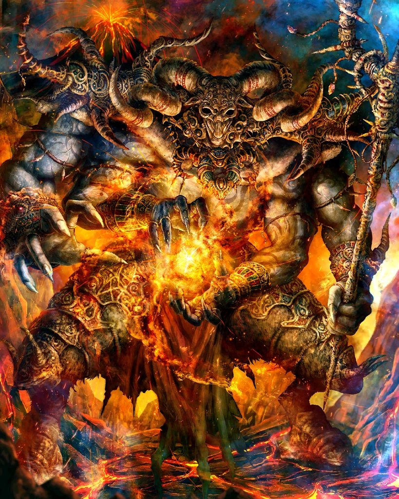 | The emperor whose thirst for power doomed his soul for eternity. This rare card can only be obtained through summoning. Creates a great number of fire skillseeds. Artist: Laura Sava | ||||