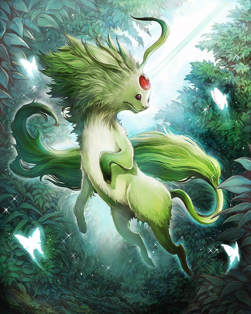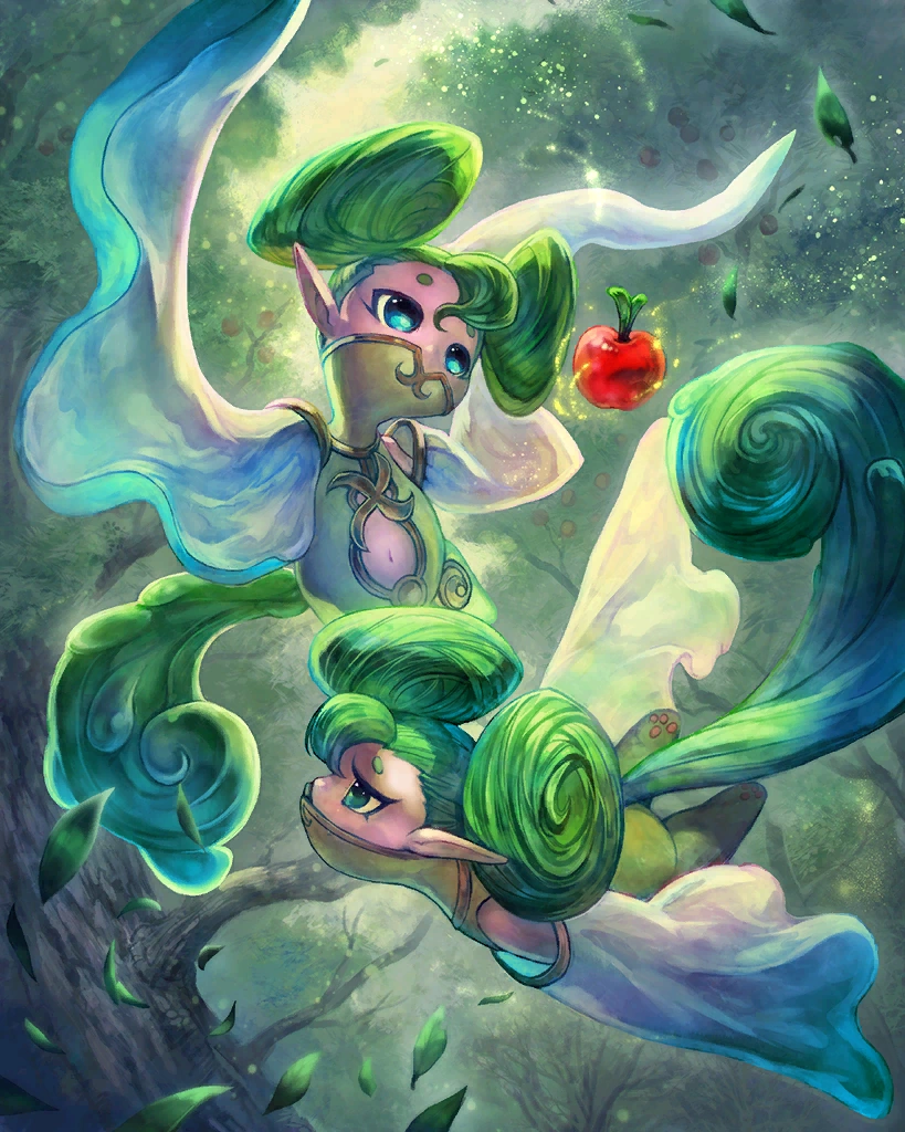 | A nature deity of the woods and fields. This rare card can only be obtained through summoning. Creates light and wind skillseeds. Artist: Meisai | ||||