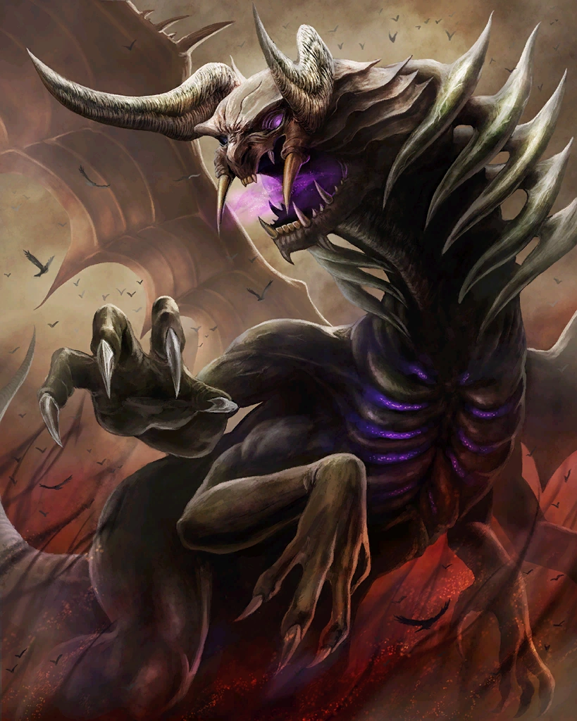 | A sky demon whose gaze is fabled to doom any who encroach upon its realm with a swift and deadly fall. This rare card can only be obtained through summoning. Creates a great number of earth skillseeds. Artist: Maxim Verehin | ||||