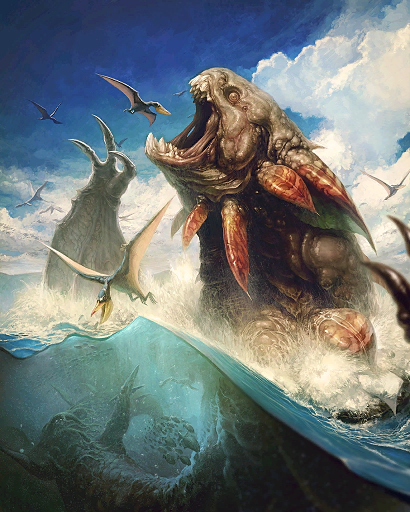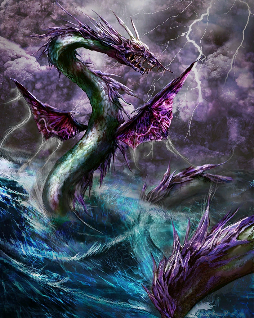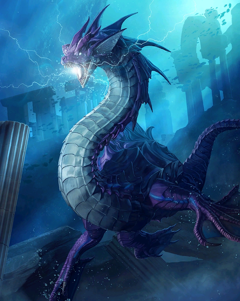 | A great wyrm and protector of the seas, whose influence reaches far beyond the shores. This rare card can only be obtained through summoning. Creates a great number of water skillseeds. Artist: Hitoshi Sasaki | ||||