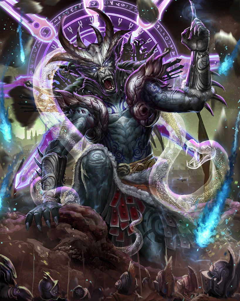 | Once worshipped as gods, these giants are said to hold the world above the nether. This rare card can only be obtained through summoning. Creates a great number of earth skillseeds. Artist: Mathias Kollros | ||||