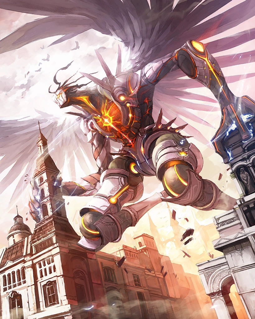 | A heavenly scion of judgment and punishment. This rare can only be obtained through summoning. Creates a great number of earth skillseeds. Artist: Christoph Peters | ||||