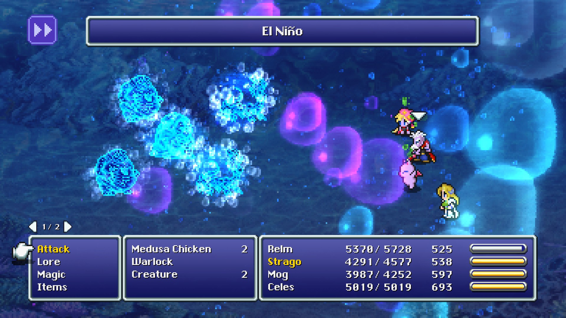 Mog's special ability is Dance, executing one of four random commands from a dance performance. Each dance is based on an environment, affecting its attacks, and new dances are learned when Mog fights in different environments. If the player attempts a dance of a different environment than the current battleground, Mog has a chance of stumbling and wasting his turn.
