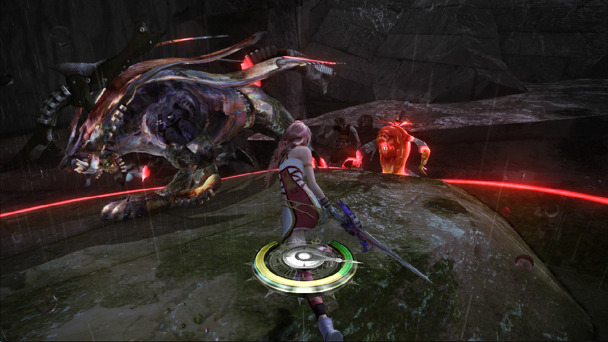 Lightning Returns: Final Fantasy XIII has a similar mechanic for initiating battles, although some rules were changed: if the enemy attacks Lightning first, she loses 5% of her HP on Normal and Hard difficulties; when Lightning strikes the enemy after she is noticed, all the enemies in the enemy party lose 10% of their HP, and if Lightning strikes the enemy without being noticed, all the enemies in the enemy party will lose 25% of their HP.