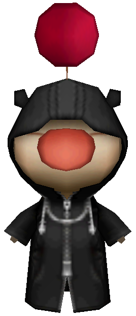 In Kingdom Hearts 358/2 Days, a single moogle, wearing the black coat akin to those worn by Organization XIII, can be found in The World That Never Was and in Twilight Town in front of the Train Station appearing after Roxas has left Organization XIII (claiming that Roxas is too good of a source of income to abandon). Like other moogles, it runs a shop and synthesizes items. It may either be a Nobody moogle, or hired by the Organization. However, it is most likely simply an artistic choice to emphasize the adorable nature of said moogle.