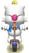 During Story Mode, Chocobo and Cid come to the place to deliver the vehicle Mog had asked for. Gravely disappointed at it, he challenges Chocobo to a race with his new vehicle, a scooter.