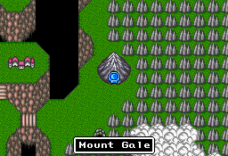 Mount Gale (かぜのさんみゃく, Kaze no Sanmyaku?) is a location from Final Fantasy Mystic Quest. It is located to the east of Windia, and a wind coming from this mountain is blowing across Windia, preventing Otto from using his Rainbow Road Machine.